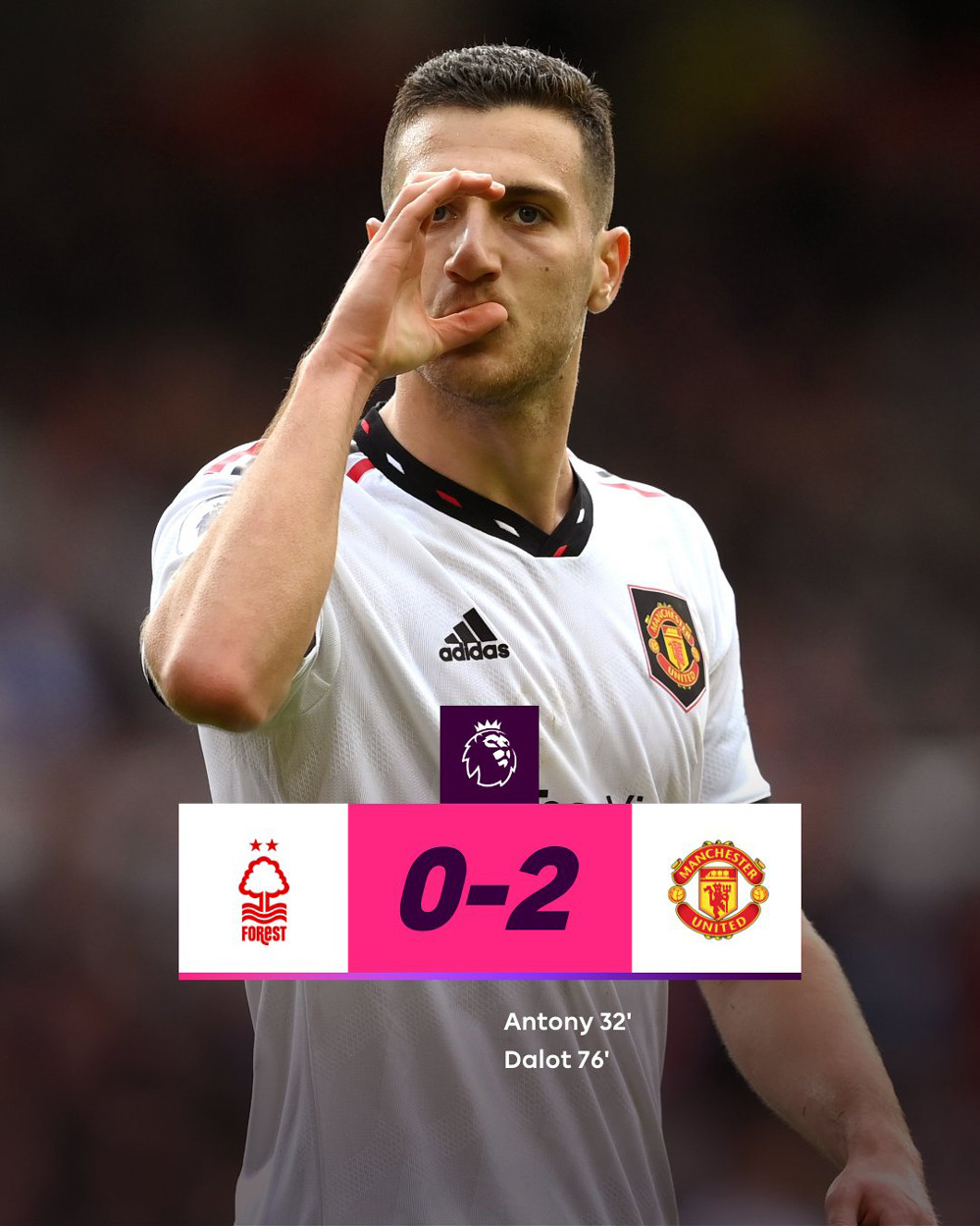 Bàn thắng (2-0, Diogo Dalot): Antony rẽ vào trung lộ rồi chọc khe thông minh để Dalot xâm nhập vòng cấm dứt điểm tung lưới Nottingham nhân đôi cách biệt.