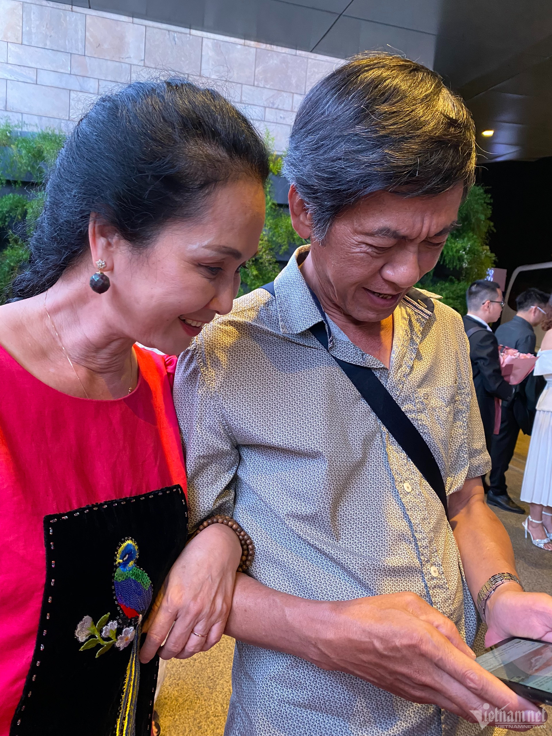 NSND Bùi Bài Bình và NSND Lan Hương tái ngộ tại sự kiện giao lưu nghệ sĩ và khán giả diễn ra tối 11/5 trong khuôn khổ Liên hoan phim châu Á Đà Nẵng lần thứ nhất. Hai nghệ sĩ hào hứng trò chuyện khi kết thúc sự kiện. NSND Bùi Bài Bình và NSND Lan Hương từng đóng phim 'Mùa ổi' của đạo diễn Đặng Nhật Minh năm 2000 và mới đây tái ngộ khán giả với vai vợ chồng ông Toại - bà Cúc trong phim truyền hình 'Gia đình mình vui bất thình lình' đang phát sóng trên VTV. NSND Lan Hương được nhiều khán giả nhận ra khi tới các hoạt động của Liên hoan phim ở Đà Nẵng bởi chị đã tạo dấu ấn quá đặc biệt trên phim truyền hình với các vai mẹ chồng những năm qua. Tại buổi giao lưu với khán giả, NSND Lan Hương chia sẻ: "Sau khi đóng vai các bà mẹ chồng ghê gớm và đáng sợ thì trong 'Gia đình mình vui bất thình lình', Lan Hương được vào vai khá gần gũi với mình nên rất thích thú. Vai bà Cúc cứ nói là đóng phim cho oai nhưng thực ra tôi không phải đóng gì vì nó cũng giống như cuộc sống thường ngày. Quan điểm của bà mẹ chồng trên phim và quan điểm sống của Lan Hương gần nhau khiến cho một diễn viên như tôi đỡ mệt". Xuất hiện tại buổi giao lưu nghệ sĩ với khán giả còn có NSƯT Minh Trang. Nữ nghệ sĩ chọn đầm trắng đơn giản nhưng nổi bật khi xuất hiện trên thảm đỏ. NSƯT Minh Trang chia sẻ chị có đóng một vai nhỏ trong 'Maika: Cô gái đến từ hành tinh khác' - 1 trong các phim dự thi hạng mục Phim Việt Nam tại Liên hoan phim châu Á Đà Nẵng 2023. Tuy vậy khi phim chiếu nữ diễn viên không thấy mình xuất hiện trên màn ảnh. NSƯT Minh Trang hài hước nói sau sự kiện này sẽ phải nói chuyện với đạo diễn. NSƯT Minh Trang có dịp tái ngộ 'con trai' Trần Nghĩa (phim 'Mắt biếc') và NSND Bùi Bài Bình. Trước đó họ vào vai một gia đình trong phim 'Chiều ngang qua phố cũ'. NSND Bùi Bài Bình ngoái nhìn NSƯT Minh Trang khi bước trên thảm đỏ. Nam nghệ sĩ vẫn còn nhớ cảnh phải tát NSƯT Minh Trang khi hai người đóng vai vợ chồng trong 'Chiều ngang qua phố cũ' nhiều năm trước.