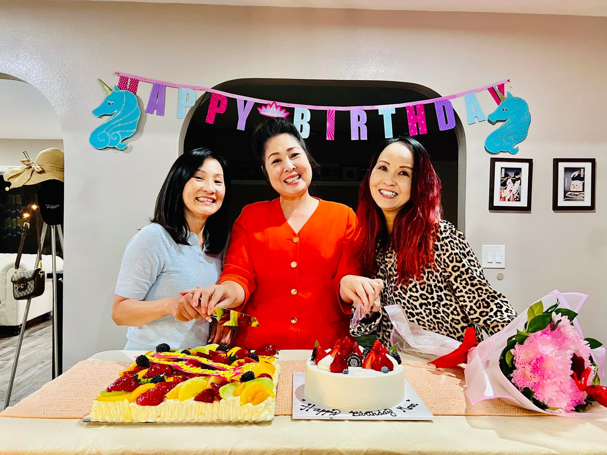 Riêng năm nay, sinh nhật Hồng Vân càng thêm ý nghĩa khi có sự hiện diện của cháu ngoại Simba. Cả nhà Hồng Vân quây quần chúc tụng đến bà ngoại, ăn bánh, tặng quà từ tối 26/5 (giờ Mỹ) đến hơn nửa đêm mới tàn tiệc.