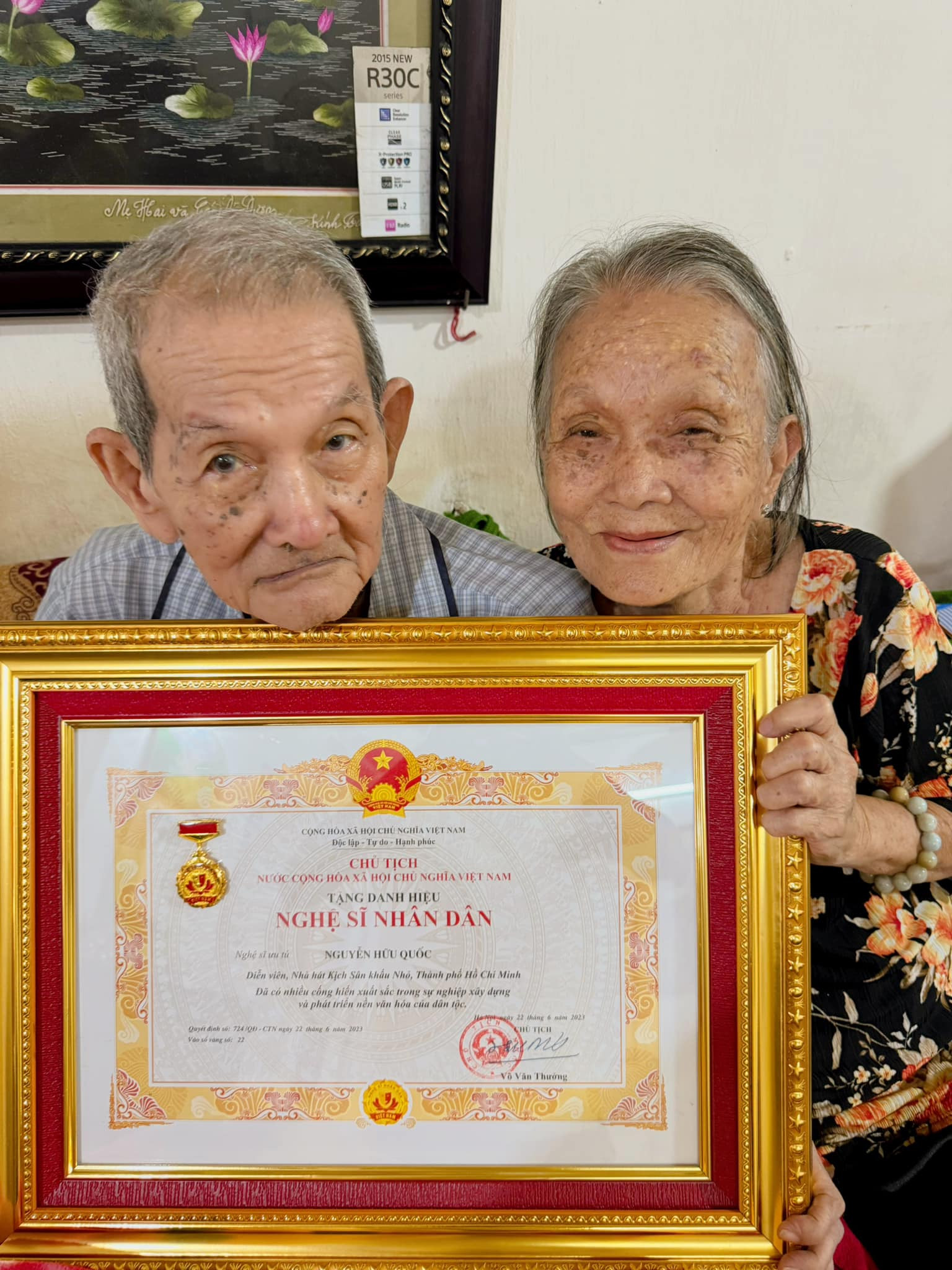 Hữu Quốc tặng bằng Nghệ sĩ nhân dân cho cha mẹ. Cha anh bị lẫn nặng vẫn nhận ra con trai.