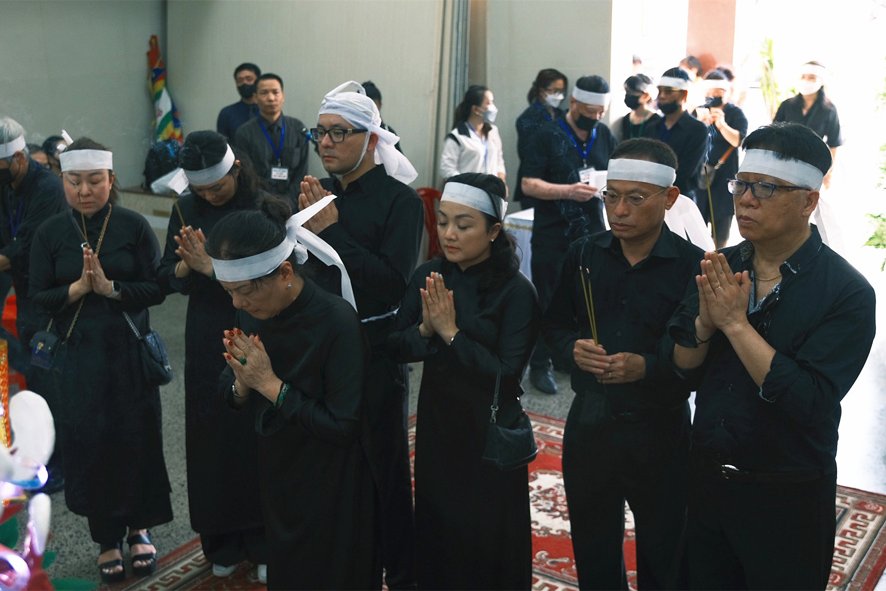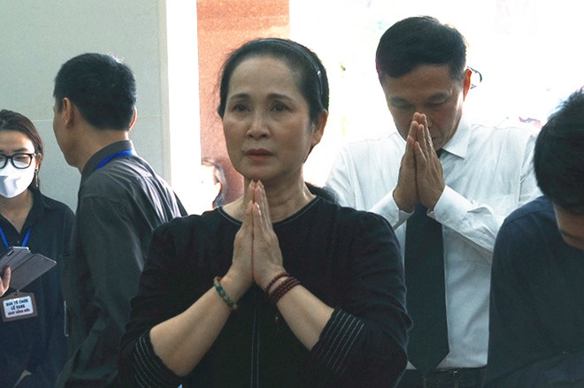 Chồng mất, bà Nhung vô cùng đau đớn nhưng phải nén nước mắt cùng các con lo tang lễ cho NSƯT Hồng Đức.