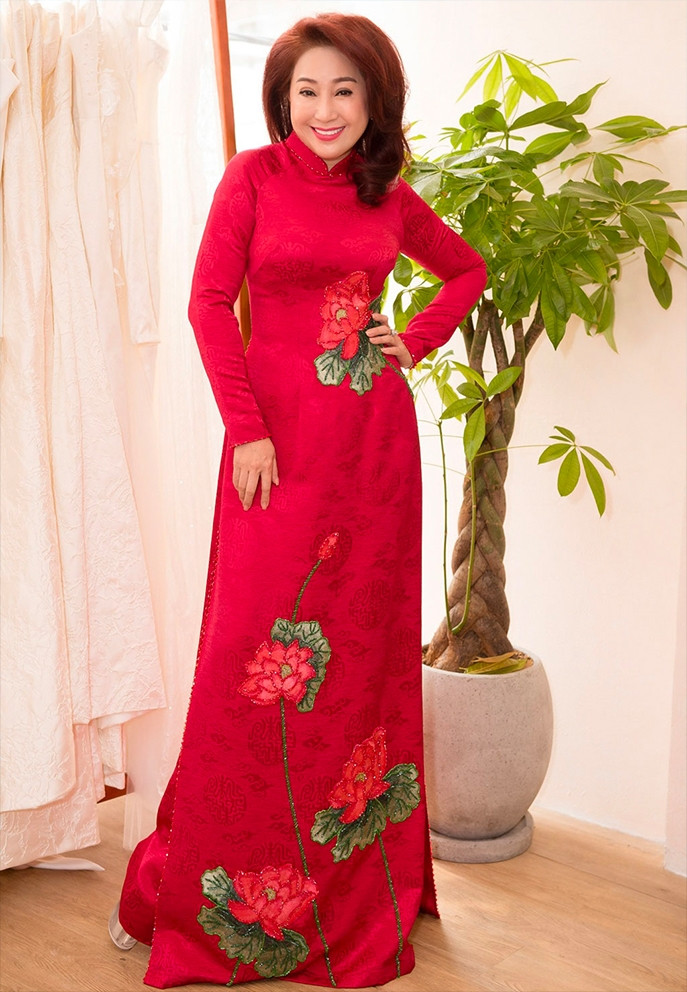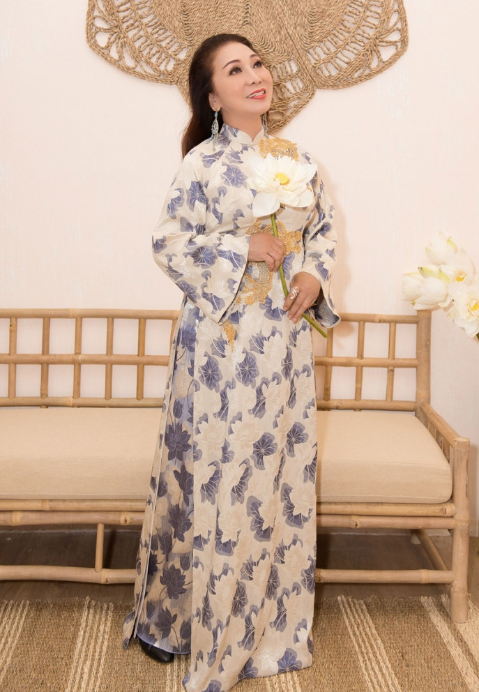 NSND Bạch Tuyết và NSƯT Thoại Mỹ trong tà áo dài của NTK Song Toàn.