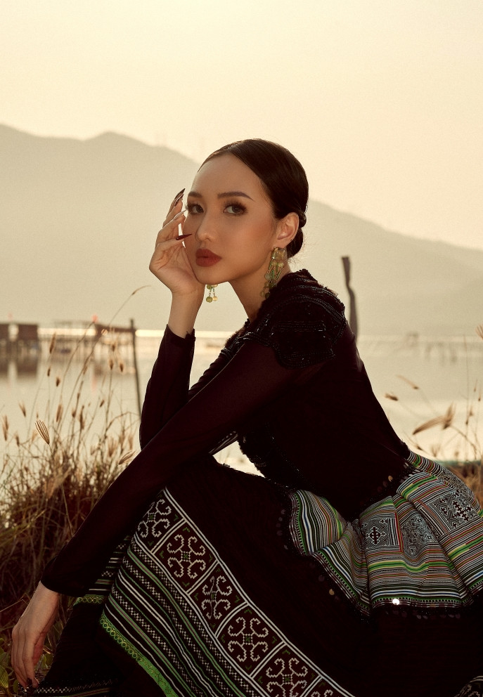 Với BST Việt Nam Hoa Quốc Văn Phong, nhờ kỹ thuật pha, ghép chất liệu thủ công tinh xảo và kỹ thuật thêu tay, đính kết cầu kỳ kết hợp với các tông màu quý phái, sang trọng, các mẫu áo dài gợi lại nét cổ xưa, truyền thống trong văn hóa dân tộc.