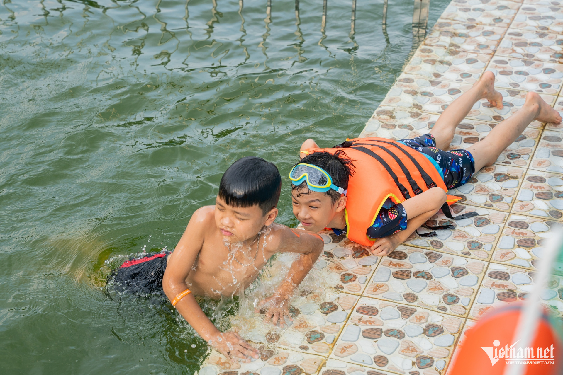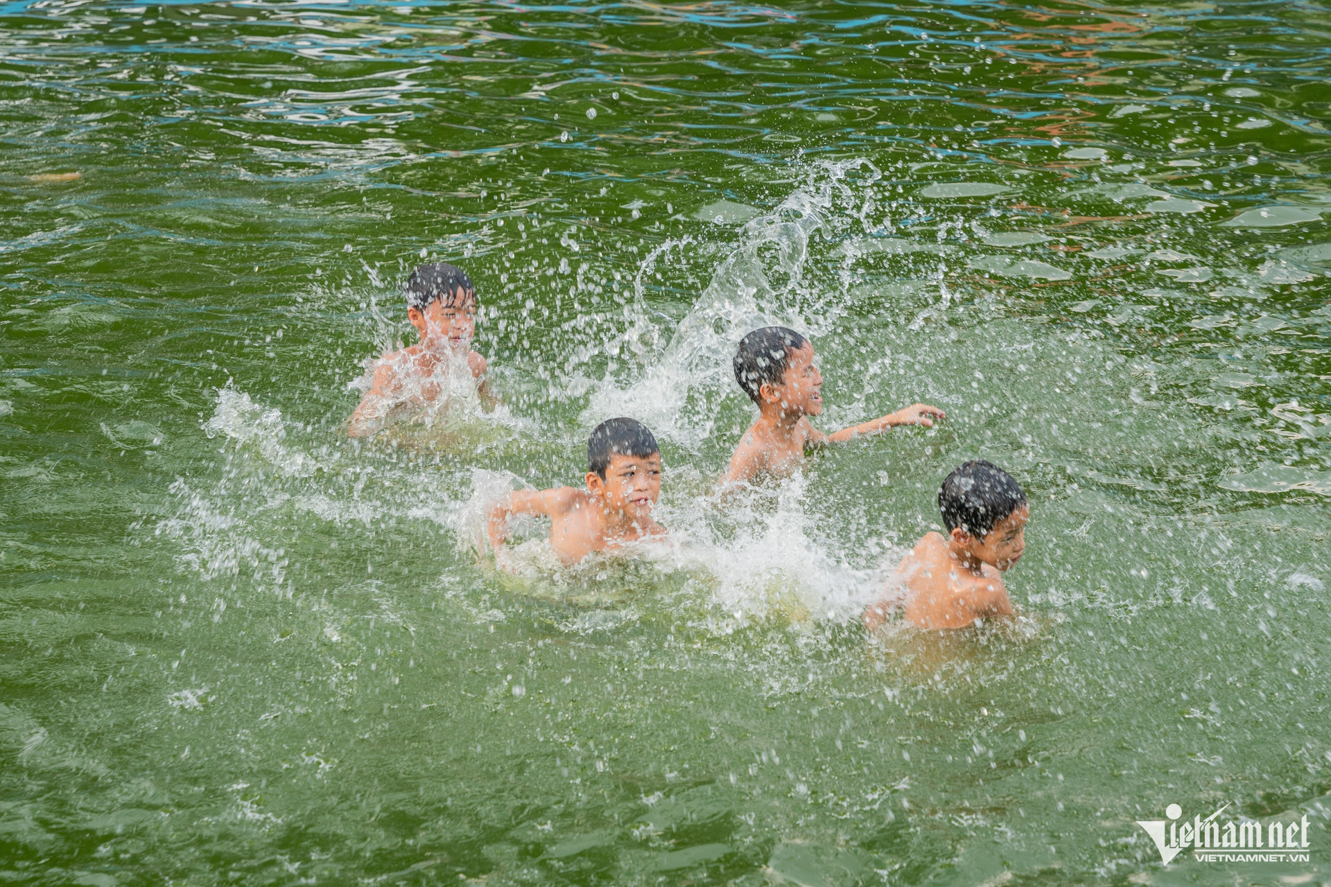 Các bạn nhỏ thích thú khi được vùng vẫy trong làn nước mát giữa những ngày hè oi ả.