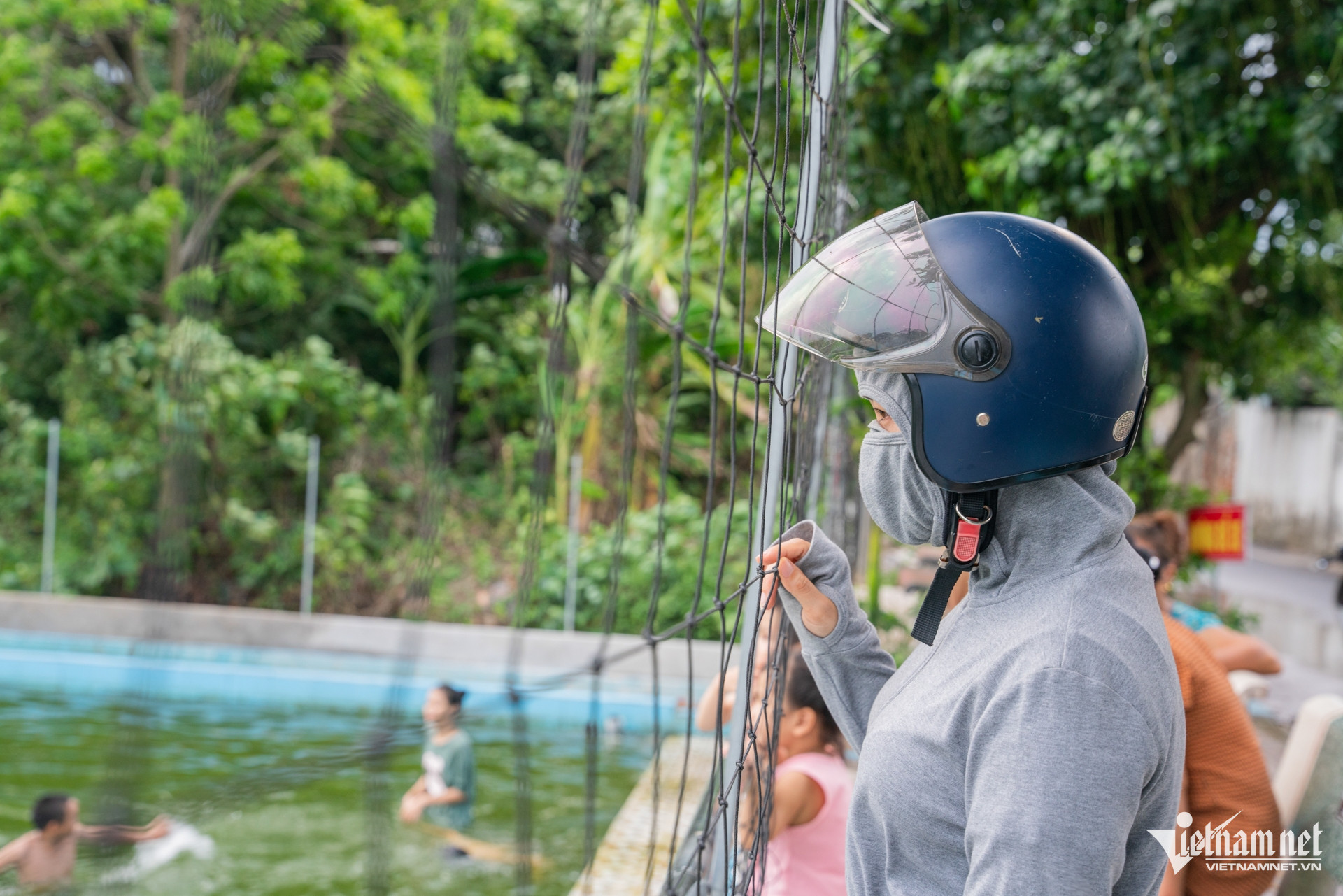 Hằng ngày, Ban quản lý vận hành bể bơi làng Hưng Giáo đều cử nhân viên bảo vệ túc trực, liên tục phát loa nhắc nhở các cháu bơi lội an toàn.