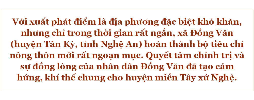 "Đến thời điểm hiện tại, huyện Tân Kỳ đã tổ chức thẩm định kết quả xây dựng các tiêu chí, kết quả thẩm định cho thấy 19/19 tiêu chí được thông qua và đủ điều kiện trình UBND tỉnh thẩm định và công nhận xã Đồng Văn đạt chuẩn Nông thôn mới năm 2023", ông Bảo chia sẻ.