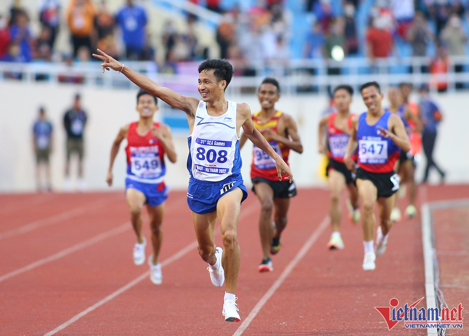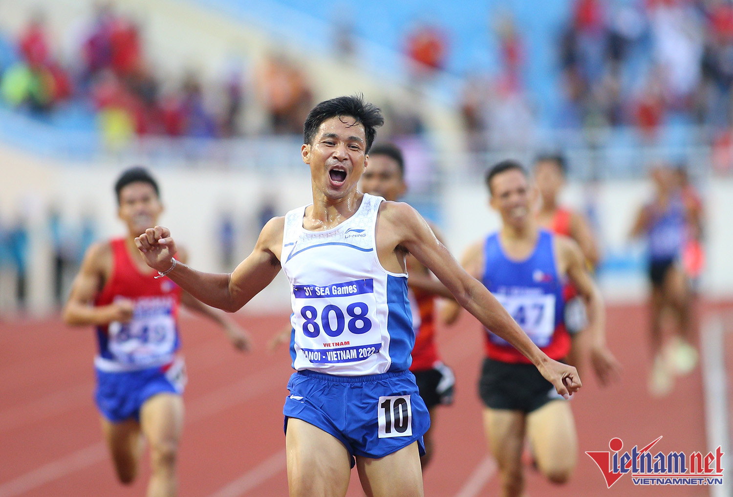Trần Nhật Hoàng không thể bảo vệ tấm HCV ở nội dung chạy 400m do gặp vấn đề chấn thương. Anh đổ gục xuống sân, sau đó phải nhờ mọi người giúp đỡ mới đứng được dậy. Mẹ của Nhật Hoàng cũng có mặt để động viên con traiNước mắt của chân chạy 21 tuổiLão tướng Nguyễn Văn Lai không có đối thủ ở nội dung chạy 5.000mVĐV kỳ cựu của tuyển điền kinh Việt Nam ăn mừng đầy cảm xúcNguyễn Văn Lai đóng góp 1 HCV trong ngày thi đấu hôm nay của tuyển điền kinh Việt NamBà mẹ 1 con Nguyễn Thị Huyền tiếp tục không có đối thủ ở đường chạy 400mNguyễn Thị Huyền và Quách Thị Lan đều lập côngNụ cười hạnh phúc của hai cô gái vàng Việt NamTuyển điền kinh có 5 HCV trong ngày thi đấu hôm nay, trong đó có nội dung nhảy xa của Nguyễn Tiến TrọngTâm điểm trong ngày thi đấu là Nguyễn Thị OanhVĐV quê Bắc Giang hoàn tất 3 HCV ở nội dung 3.000m vượt chướng ngại vậtCô cũng phá kỷ lục SEA Games của chính mìnhNguyễn Thị Oanh ăn mừng hạnh phúc sau thành tích mà mình đạt đượcCô đóng góp 3 HCV cho đội tuyển điền kinh Việt NamSau 2 ngày thi đấu, đội tuyển điền kinh Việt Nam giành 9 HCV.