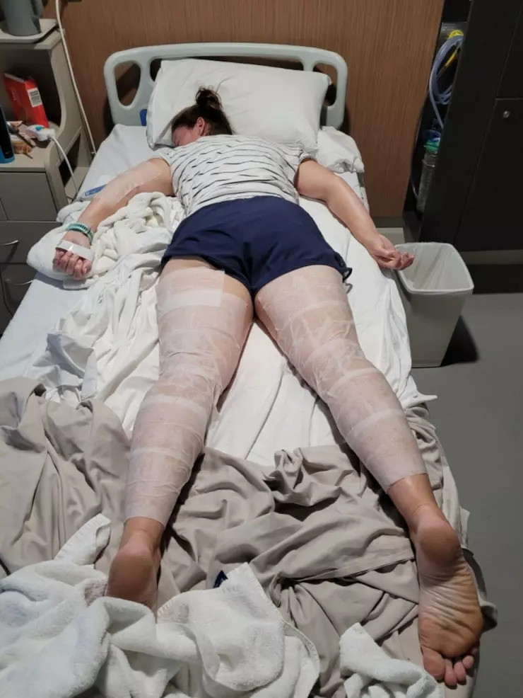 Nữ du khách 42 tuổi sau đó cho biết cô ngay lập tức cảm thấy đau nhói cả hai chân và bỏng rát như đang bị đốt cháy. "Nó thực sự vô cùng kinh khủng, vượt cả ngưỡng chịu đựng khiến tôi bắt đầu nôn mửa. Tôi có bốn người con, trong đó ba lần sinh mổ và một lần sinh thường. Nhưng quả thực cảm giác lúc đó còn đau hơn khi sinh con", cô Lewis kể lại.