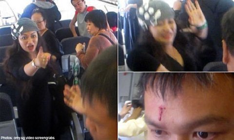 | Nữ hành khách liên tục chửi mắng, dùng hành lý và móng tay tấn công 2 hành khách Singapore (Ảnh: Asiaone) |