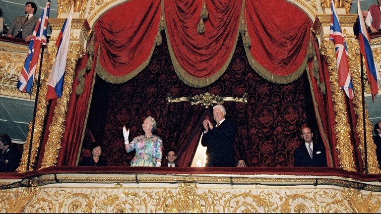 Tổng thống Nga Boris Yeltsin đã tổ chức một bữa tiệc xa hoa để tiếp đón Nữ hoàng.