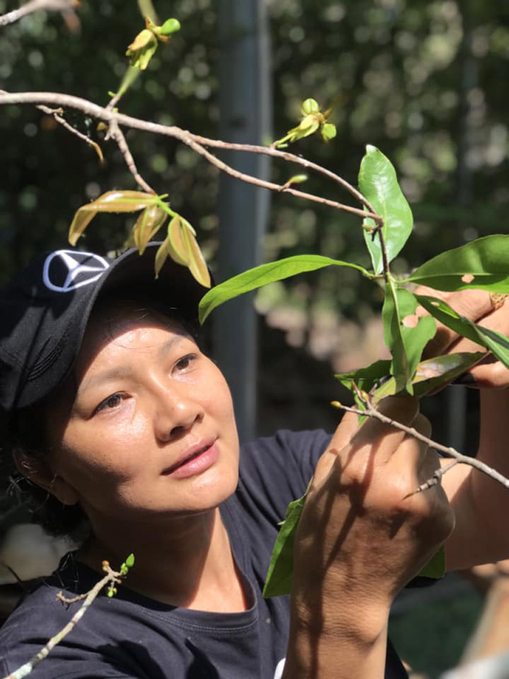 Chị chăm bón cây cối chủ yếu bằng nước sạch được bơm lên từ giếng. Tuy nhiên, trong những năm gần đây, tình hình thời tiết có nhiều biến động, hạn hán kéo dài ảnh hưởng đến cây cối trong vườn. Nhiều cây bắt đầu héo úa và chết dần. Một phần vì chị quá bận rộn, thường xuyên phải đi diễn xa, không có thời gian chăm sóc nên tình trạng cây chết trở nên tồi tệ hơn.