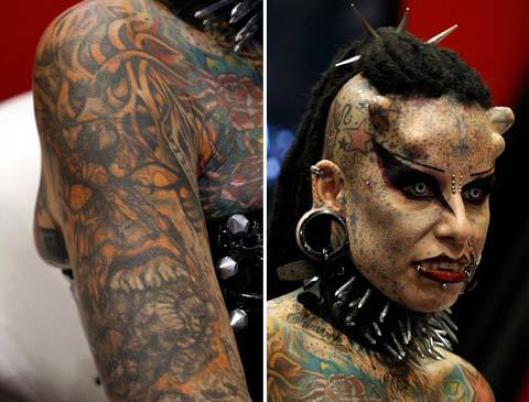 Cristerna đã phô diễn diện mạo mới của mình tại một triển lãm hình xăm ở Monterrey, California hôm 3/4. Tuy nhiên, "ma cà rồng" này cho biết cô vẫn chưa hài lòng và còn muốn cấy thêm sừng titan vào sọ sau.