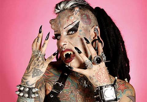 Cristerna xăm gần như kín cơ thể, cấy 2 sừng titan vào sọ và ghép răng nanh.