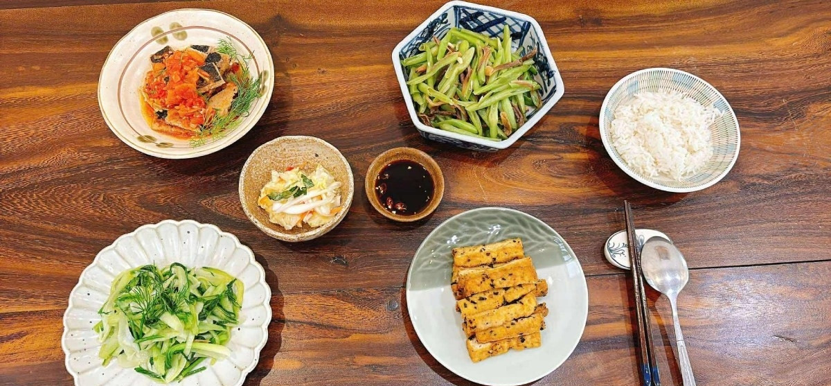“Nhiều người nghĩ ăn chay tốn kém nhưng thực ra ngược lại. Nếu ưu tiên rau củ, hạt, rong biển, ăn chay sẽ rẻ hơn rất nhiều so với ăn mặn”, chị chia sẻ.