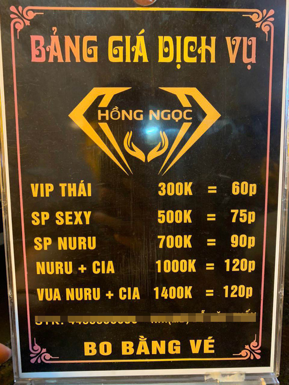 Mức giá dịch vụ tại đây từ 300 ngàn đồng đến 1,4 triệu đồng cho khách lựa chọn. Theo quy định của cơ sở, khách phải "boa" cho nữ nhân viên bằng với mức giá vé.