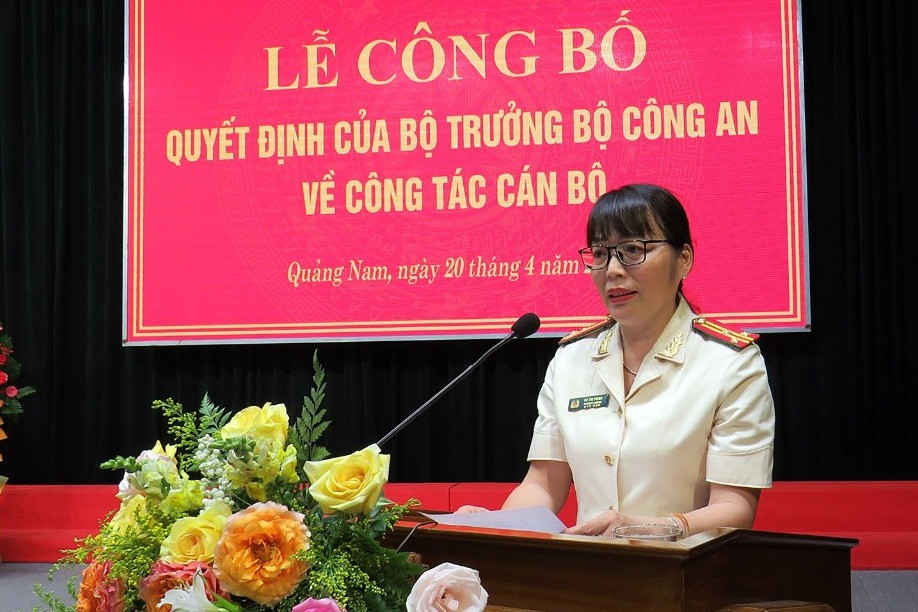 Phát biểu tại buổi lễ, Giám đốc Công an tỉnh Quảng Nam cho biết, Thượng tá Võ Thị Trinh là nữ phó giám đốc đầu tiên của công an tỉnh.