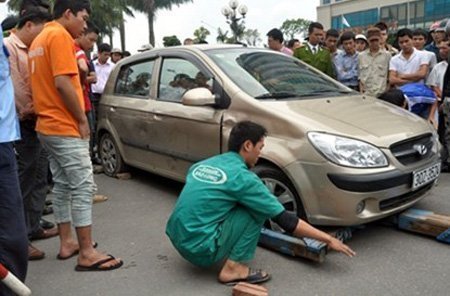 Người dân đã phải dùng chướng ngại vật và xì hơi lốp xe để dừng "xe điên" (Ảnh: Lao động) |