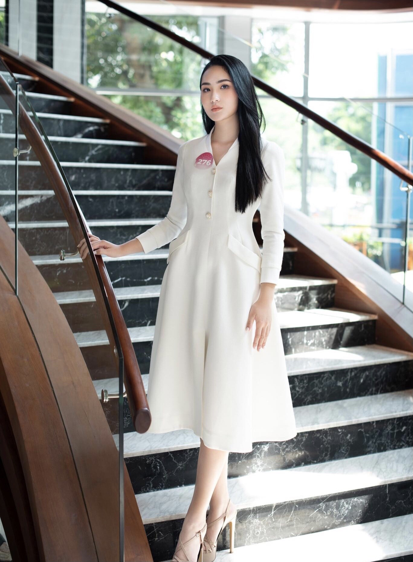 Nguyễn Lê Nhật Quỳnh (SBD 245) sinh năm 2003, đến từ Hà Nội gây ấn tượng với vẻ đẹp sắc sảo cùng nụ cười tỏa nắng.