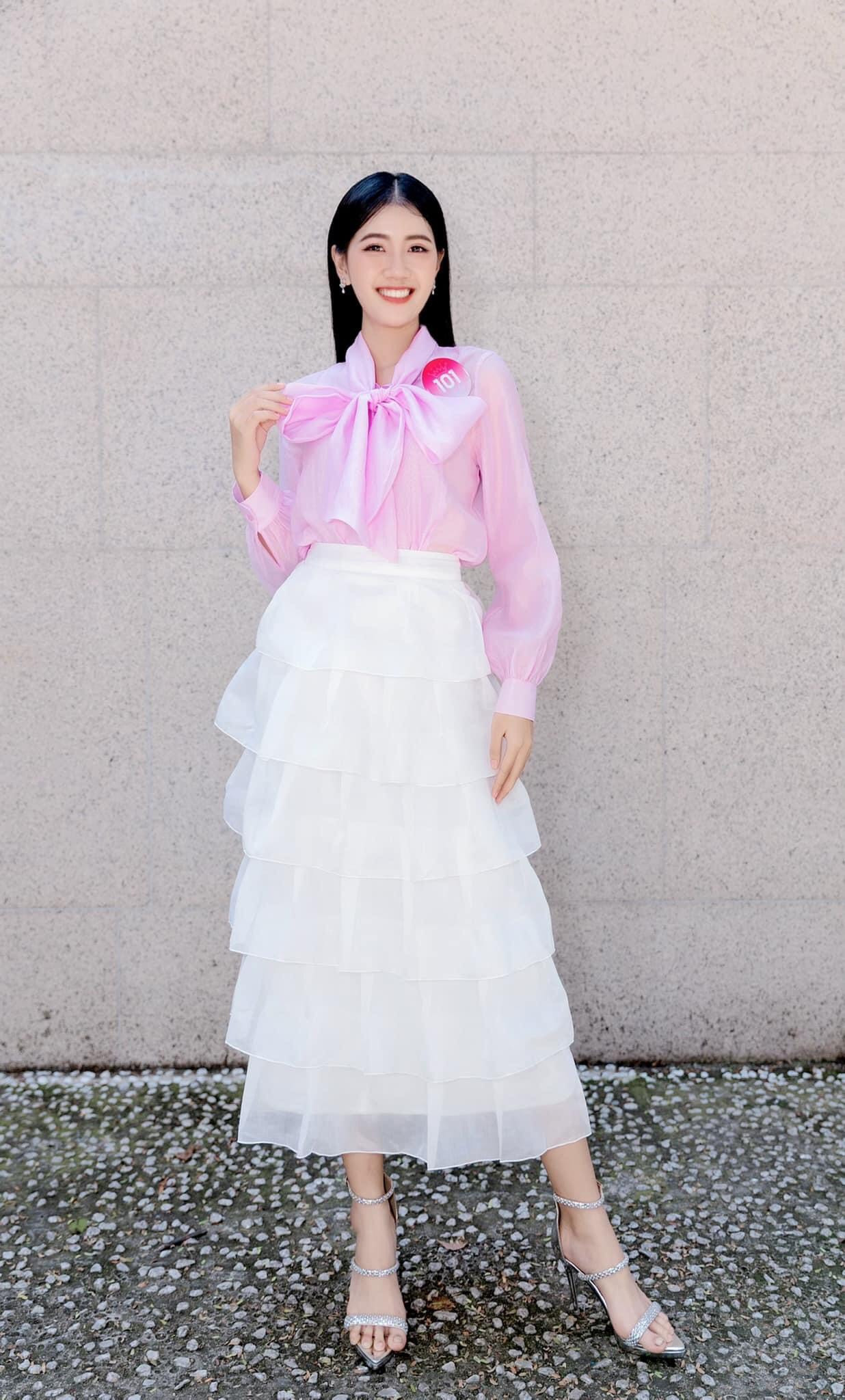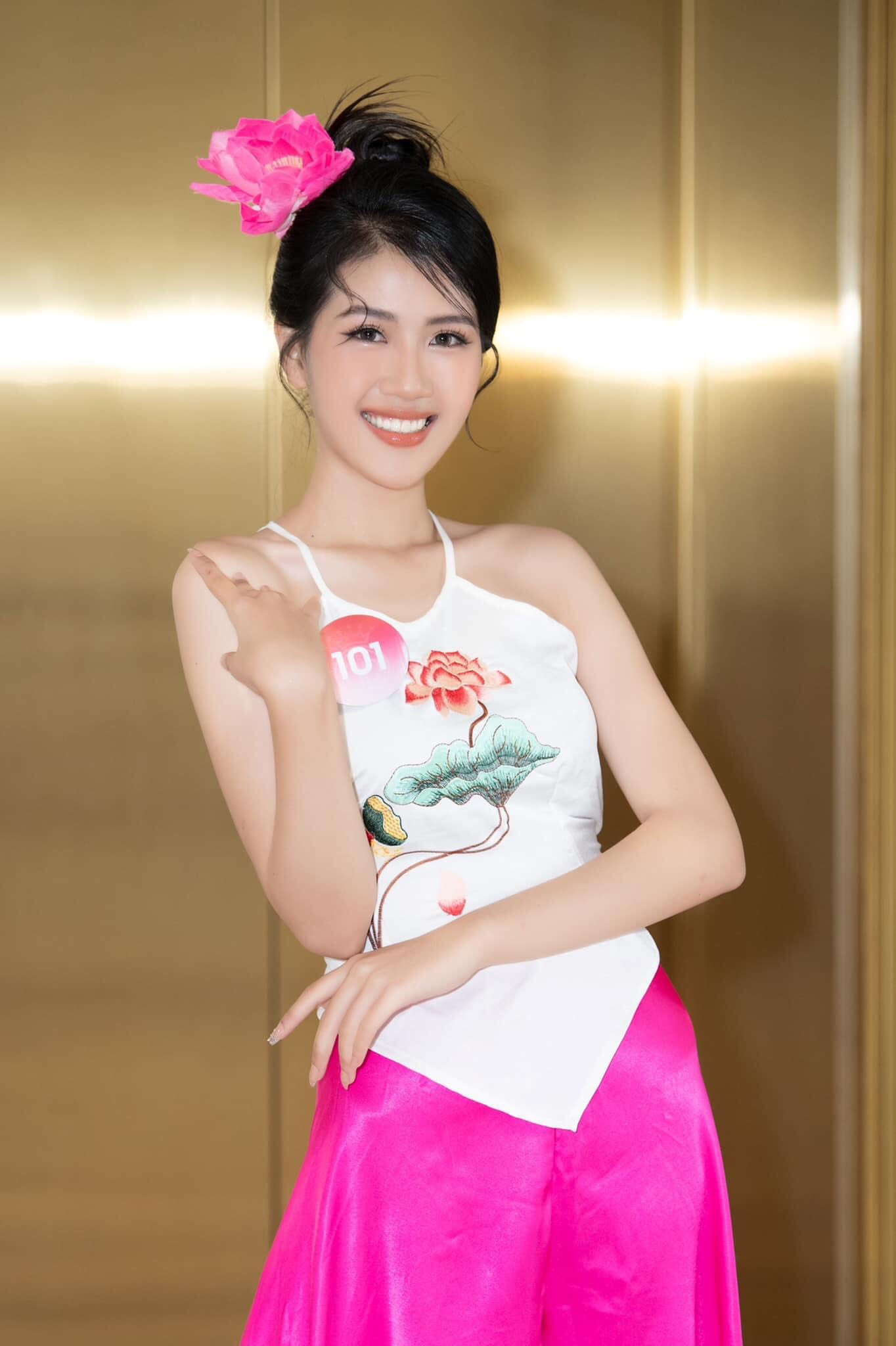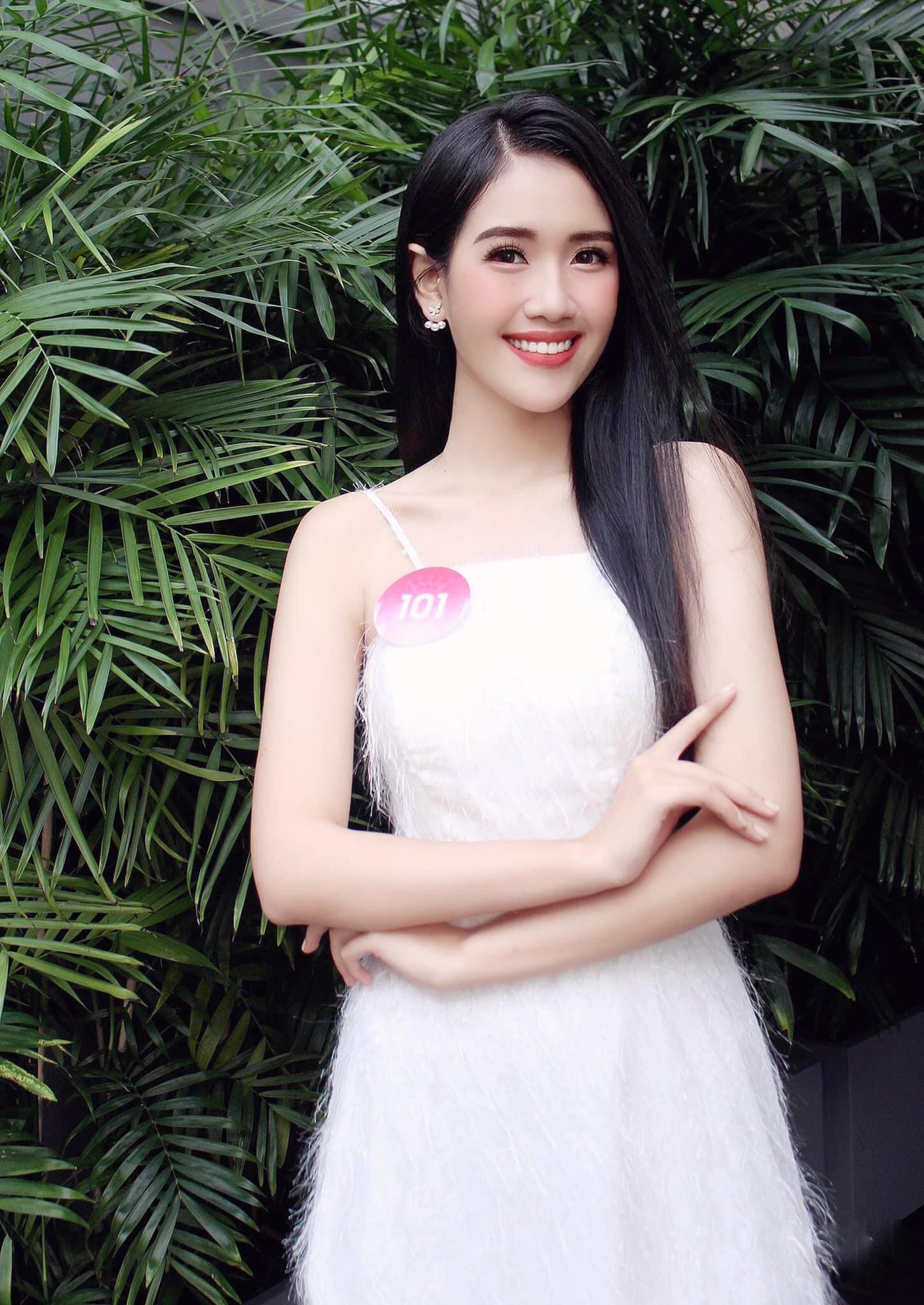 Phạm Thị Hồng Thắm (SBD 101) sinh năm 2003, đến từ Quãng Ngãi, sở hữu vẻ đẹp ngọt ngào, ưa nhìn với chiều cao 1,72 m, số đo 3 vòng 76-62-86 cm.