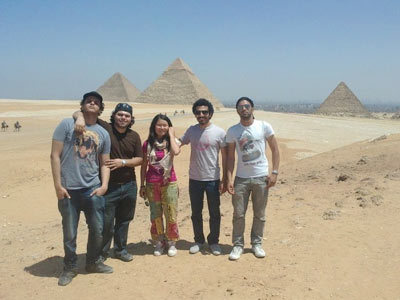 | Huyền Chip và các bạn trẻ tại Kim Tự Tháp (Ai Cập). |