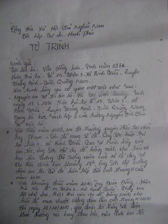 | Đơn trình báo của gia đình cháu T. |