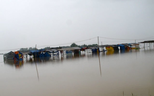 trong lúc đang đi kéo lưới trên sông thì nước lũ đổ về nhanh, kèm theo gió mạnh