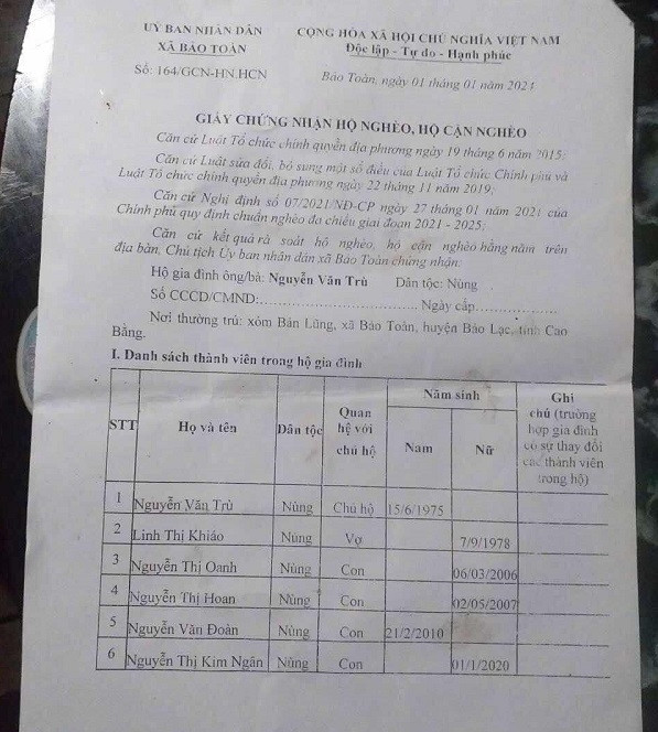 Mọi sự giúp đỡ xin gửi về: 1. Gửi trực tiếp: Chị Nguyễn Thị Liên (chị gái em Nguyễn Thị Hoan). Địa chỉ: Bản Lũng, xã Bảo Toàn, huyện Bảo Lạc, tỉnh Cao Bằng. SĐT: 0984348740. 2. Ủng hộ qua Báo VietNamNet: Ghi rõ ủng hộ MS 2024.361 (Nguyễn Thị Hoan) Chuyển khoản: Báo VIETNAMNET Số tài khoản: 0011002643148. Sở giao dịch Ngân hàng Ngoại Thương Việt Nam - 198 Trần Quang Khải, Hà Nội - Chuyển khoản từ nước ngoài: Bank account: Báo VIETNAMNET - The currency of bank account: 0011002643148 - Bank:- BANK FOR FOREIGN TRADE OF VIETNAM - Address: 198 Tran Quang Khai, Hanoi,Vietnam - SWIFT code: BFTVVNV X - Qua TK ngân hàng Vietinbank: Chuyển khoản: Báo VietNamNet Số tài khoản: 114000161718 Ngân hàng TMCP Công Thương Việt Nam - Chi nhánh Đống Đa - Chuyển tiền từ nước ngoài: Vietnam Joint Stock Commercial Bank for Industry and Trade, Dong Da Branch - Address: 183 Nguyễn Lương Bằng, quận Đống Đa, Hà Nội - Swift code: ICBVVNVX126 3. Hoặc trực tiếp báo VietNamNet: - Phía Bắc: Địa chỉ: tầng 3, tòa nhà C’Land,156 Xã Đàn 2, phường Nam Đồng, quận Đống Đa, Hà Nội. - Phía Nam: Văn phòng đại diện báo VietNamNet phía Nam, số 27 Nguyễn Bỉnh Khiêm, Quận 1, TP.HCM. Điện thoại: 19001081 |