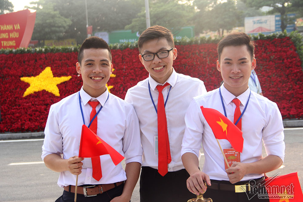 Các nam sinh viên thì bảnh bao trong áo sơ mi trắng thắt cà vạt đỏ |