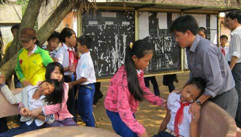 phòng học và trong sân trường ngồi nghỉ mệt vì choáng.