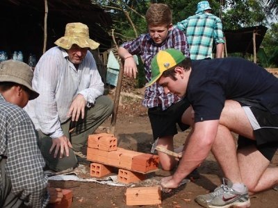 Đoàn làm nhà cho ông Lẫm có 24 người, gồm 20 học sinh, 2 thầy cô giáo và 2 phụ huynh. Để tiết kiệm chi phí, làm ngôi nhà thật đẹp, thầy trò quyết định làm luôn một số việc mà trước đó dự kiến thuê. Joel Andrew dẫn đầu nhóm bạn nam nhảy lên xuồng chèo ra đầu Cầu Xây cách nhà khoảng 500 m để chở gạch. Thỉnh thoảng Joel Andrew lội xuống bùn ngập gần đến đầu gối hì hục đẩy xuồng.