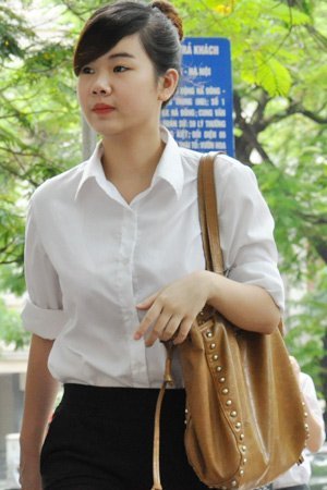 Một nữ sinh trước giờ vào làm bài thi tốt nghiệp môn Tiếng Anh. |