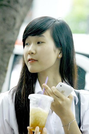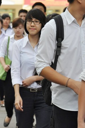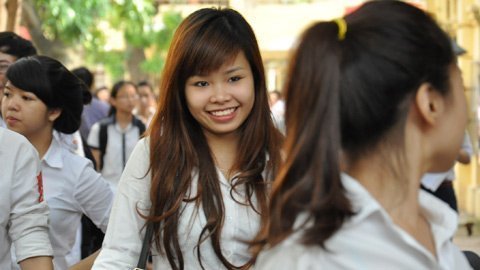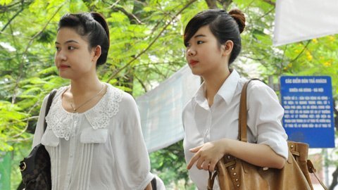 Nét tươi tắn của nữ sinh Hà Nội sau buổi thi môn tiếng Anh. |