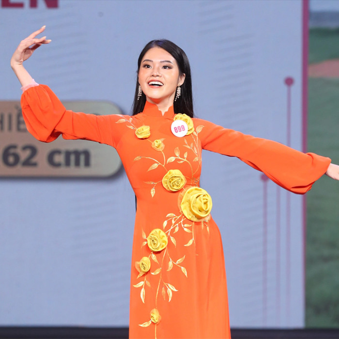 Trong đêm thi, cô gây ấn tượng ở phần thi ứng xử cùng Top 5. Người đẹp nhận được câu hỏi: “Người ta thường nói ngoại ngữ là chìa khóa để mở cửa bước ra thế giới. Theo em, có loại ngôn ngữ nào mà người điếc cũng có thể nghe, người mù cũng có thể thấy? Vì sao?”.