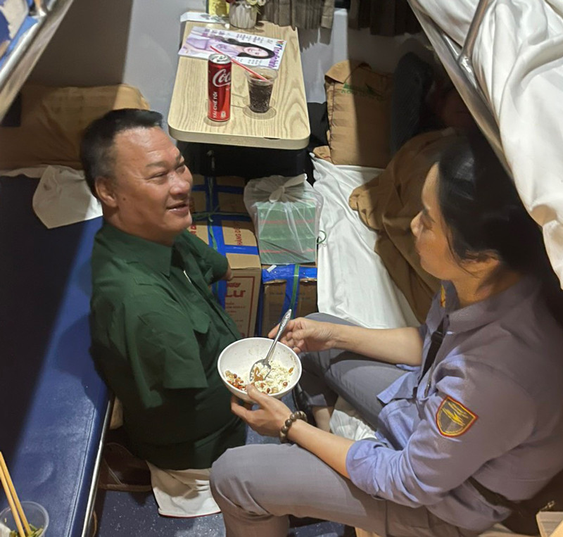 “Có nhiều người còn lì xì cho các anh em trong đoàn chúng tôi. Trưởng tàu sẽ đại diện mời các vị khách có mặt trong chuyến tàu đêm 30 xuống đón giao thừa cùng anh em ở toa hàng ăn. Giây phút ấy, tất cả là một gia đình, cùng nhau nâng ly chúc mừng năm mới, chúc nhau sức khỏe. Khoảnh khắc ấm áp ấy khiến chúng tôi quên đi nỗi cô đơn khi phải xa gia đình vào chính đêm giao thừa”, chị Hoa nghẹn ngào.