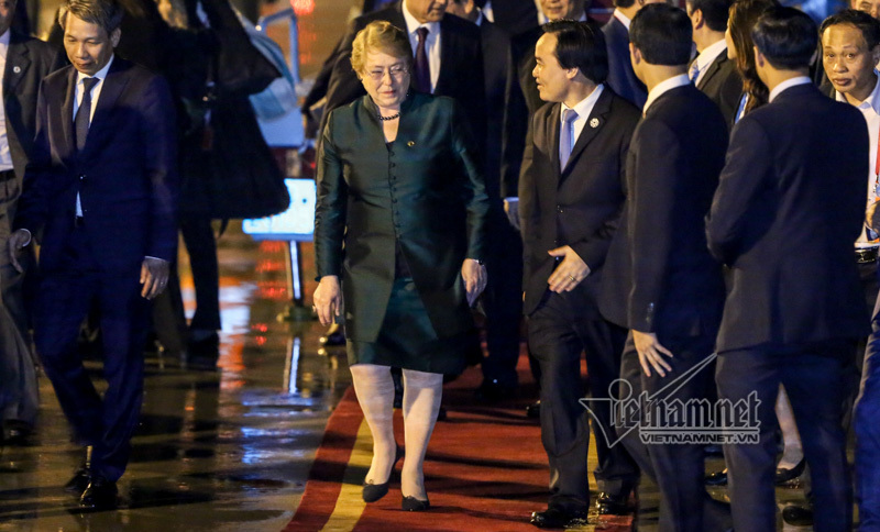Trước đó, sáng nay, tại Phủ Chủ tịch, Chủ tịch nước Trần Đại Quang đã chủ trì lễ đón chính thức Tổng thống Chile. Sau lễ đón, bà Bachelet đã hội đàm với Chủ tịch nước.