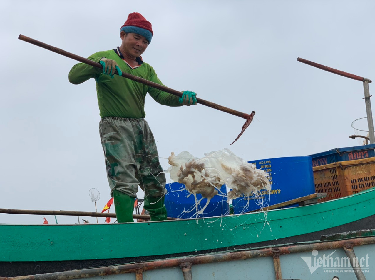 Ngư dân ở xã Thạch Văn đổ xô ra biển bắt sứa cuối mùa. Ra biển lúc 12h đêm, họ giăng lưới đánh bắt được nhiều tấn sứa, thu về tiền triệu mỗi ngày.