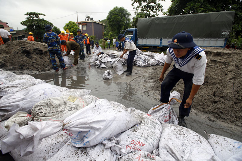 Thành phố đã huy động hàng trăm chiến sỹ bộ đội, công an cùng các lực lượng địa phương sơ tán dân, kiểm soát, cắm biển cảnh báo ở những khu vực nguy hiểm, đập tràn xung yếu.