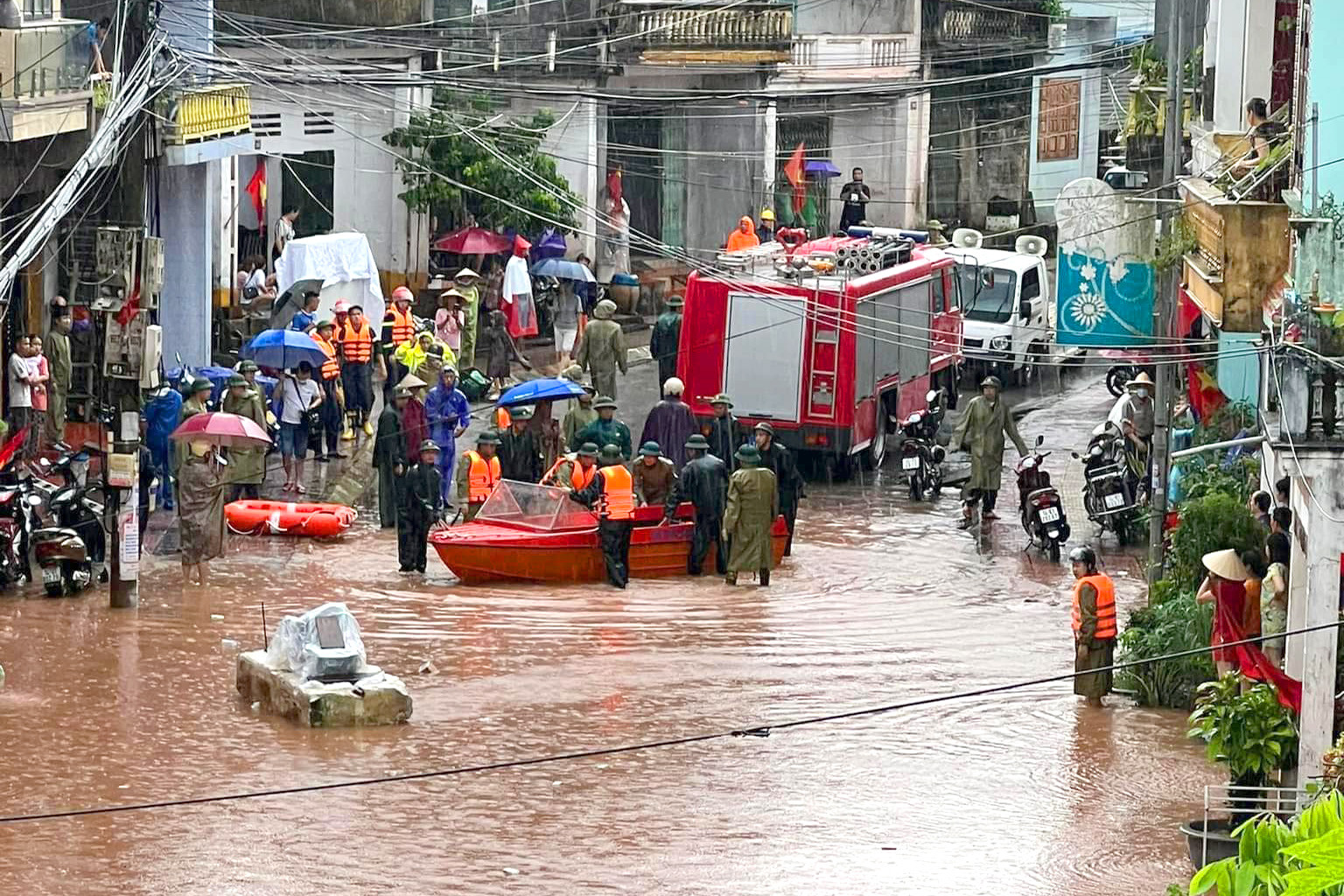 Chính quyền huyện Tiên Yên đã cử lực lượng cứu hộ dùng xe, xuồng máy để tới hỗ trợ khu dân cư ở những điểm ngập.
