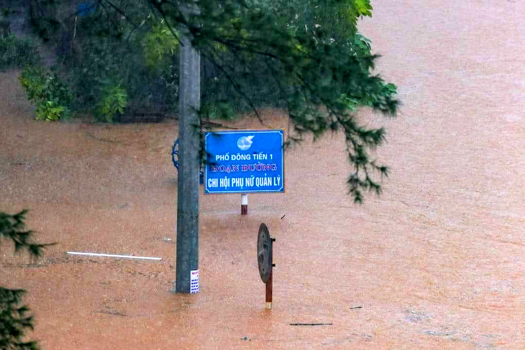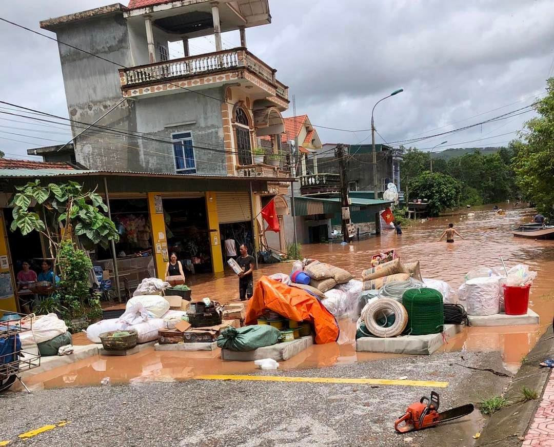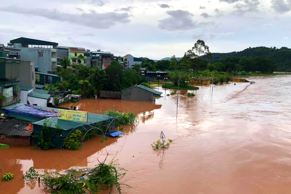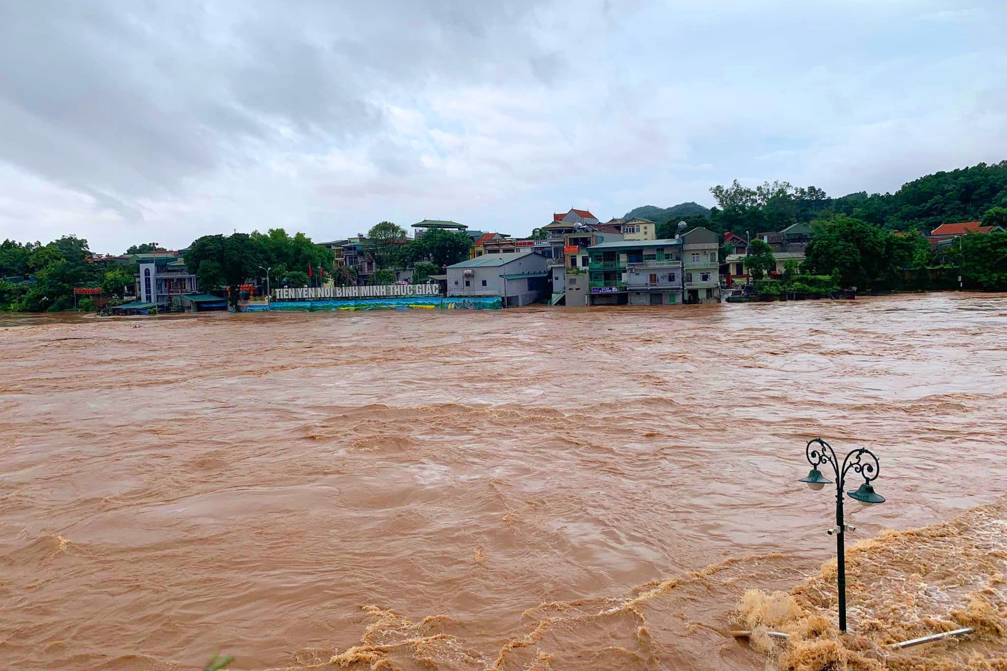 Nước lũ cuồn cuộn đổ về khiến nhiều khu vực của huyện Tiên Yên ngập sâu (Ảnh: Phan Sáu)