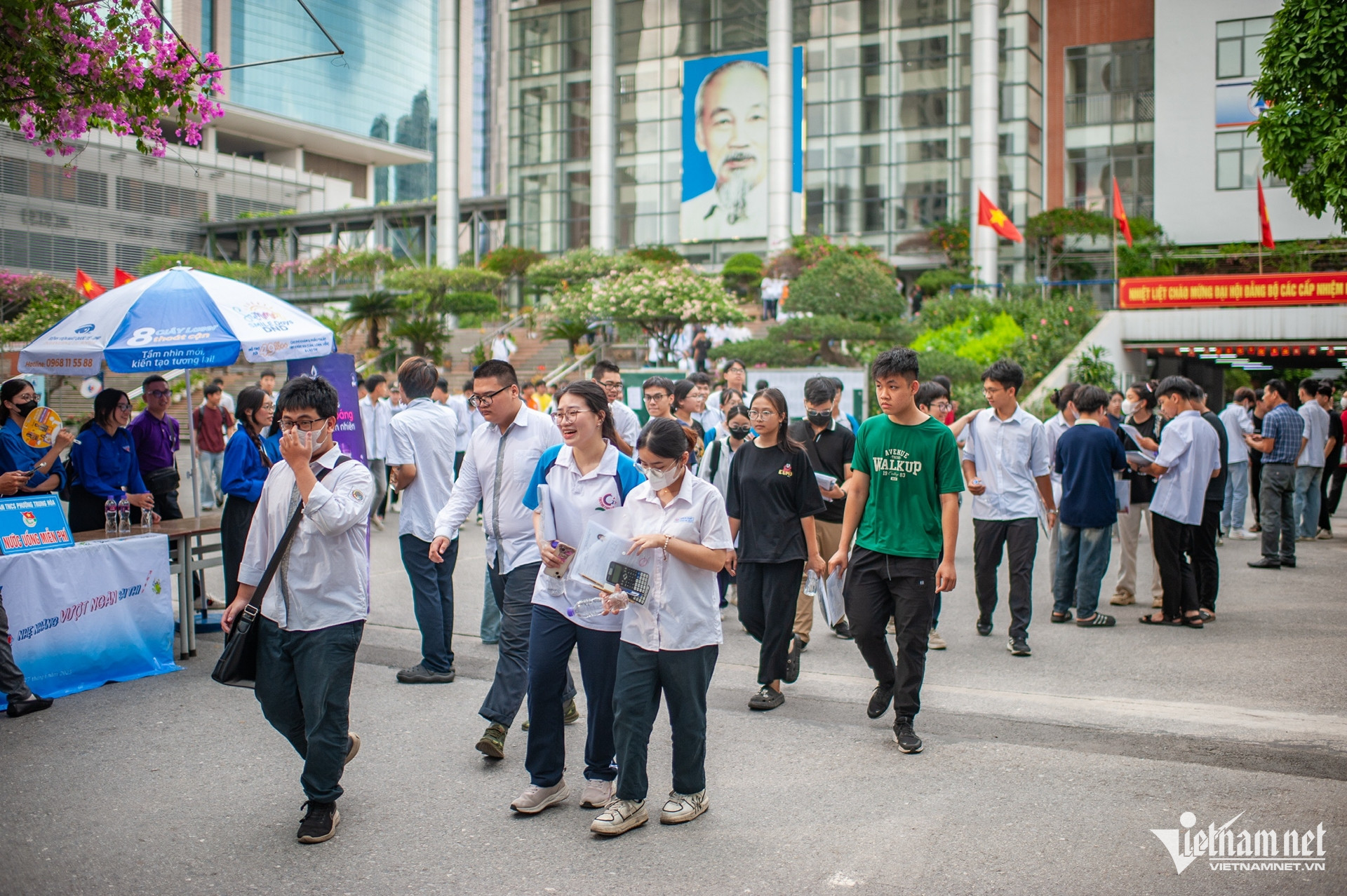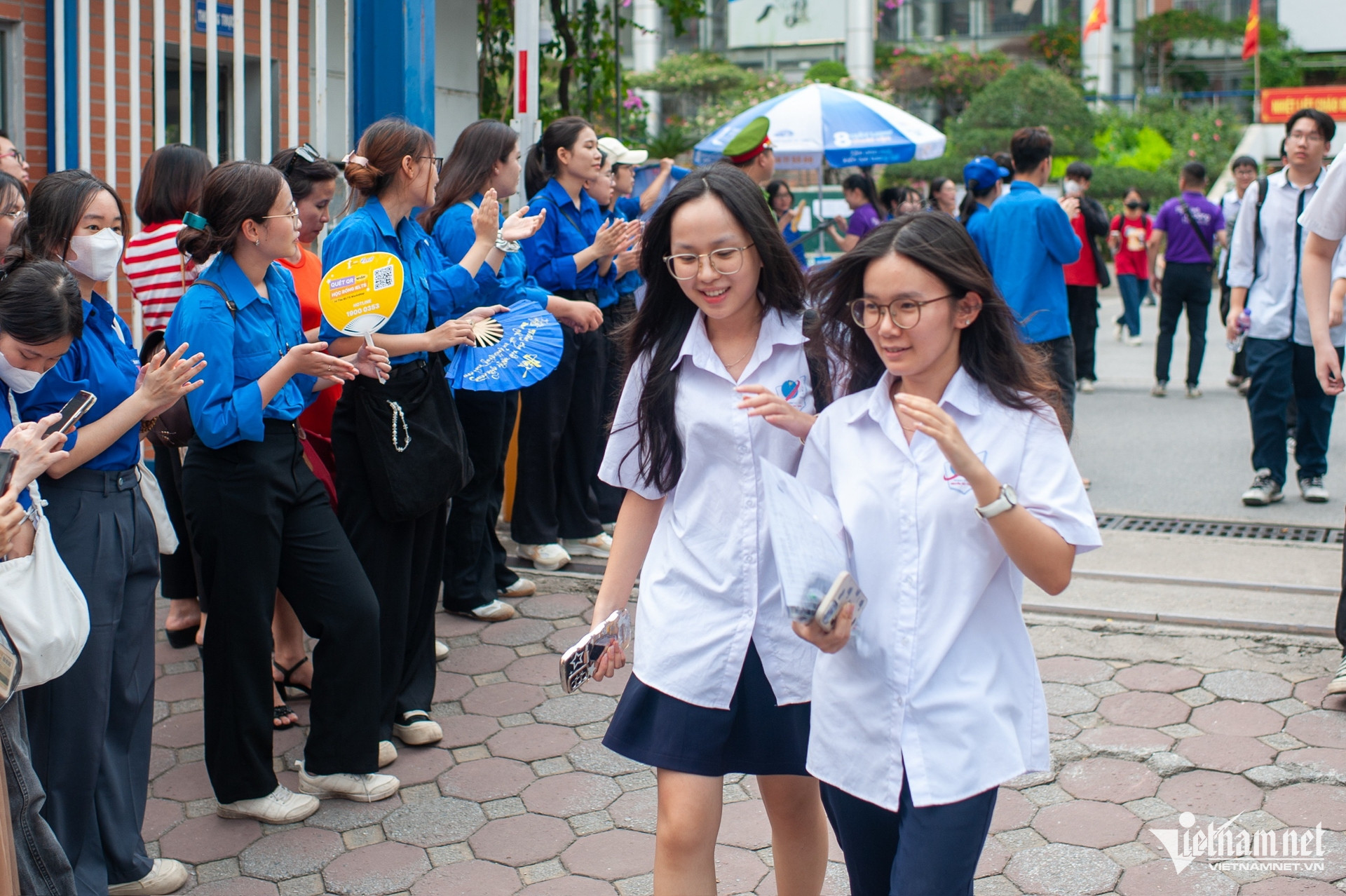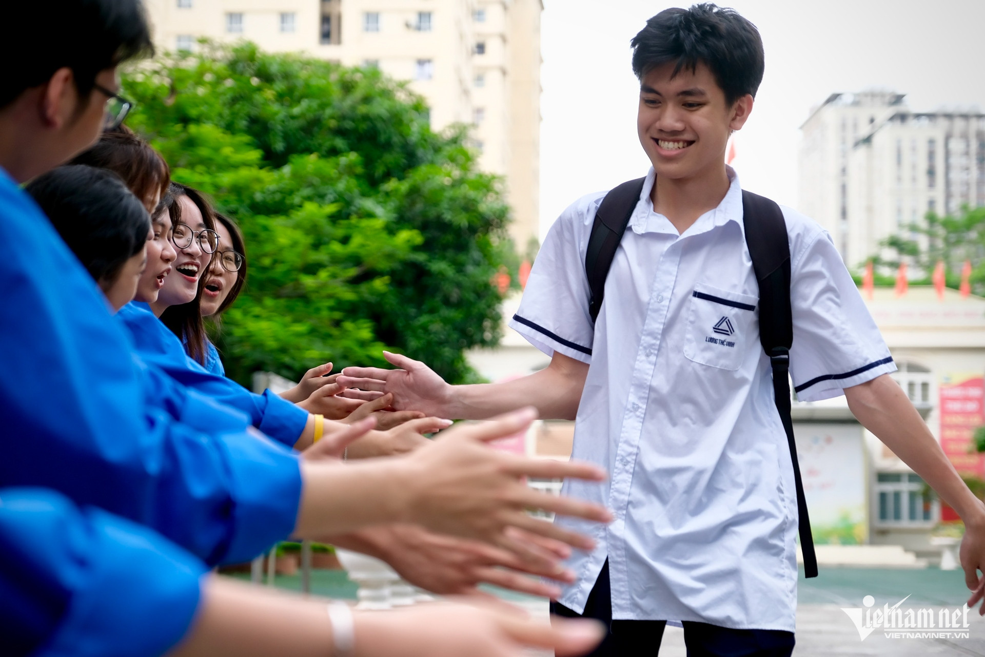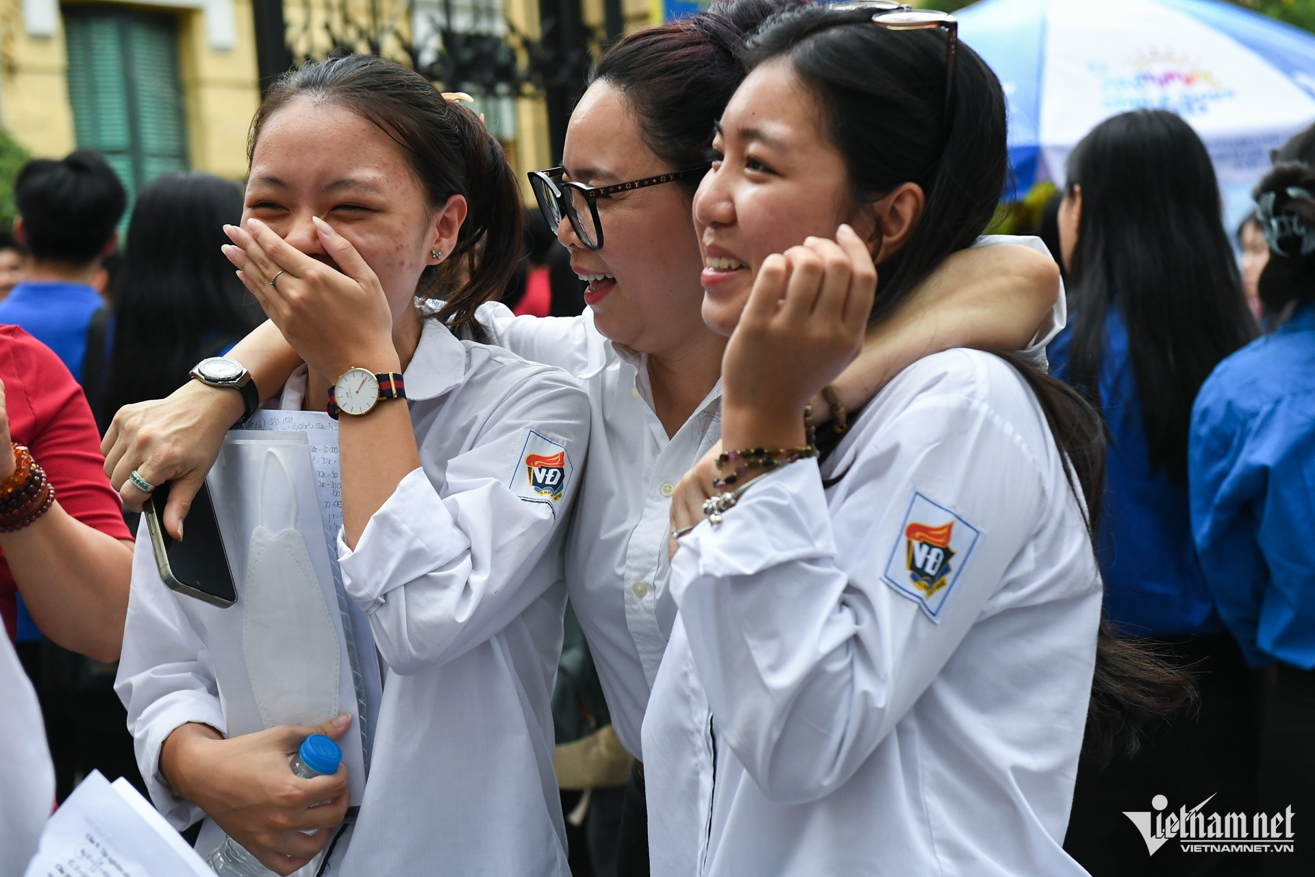 Thí sinh rạng rỡ bước ra khỏi điểm thi Trường THPT chuyên Hà Nội - Amsterdam.