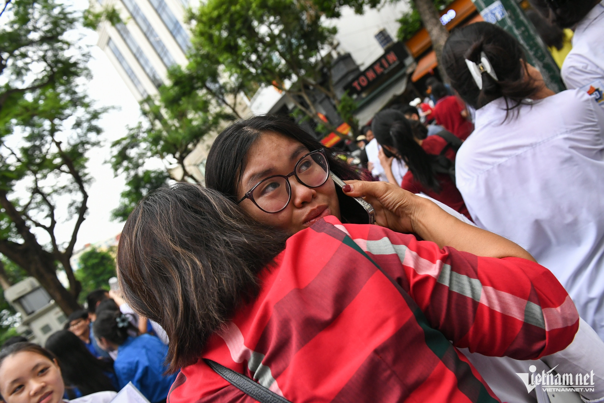 Vừa thấy con ra khỏi điểm thi, một phụ huynh đã xúc động ôm chầm lấy con với những giọt nước mắt yêu thương.