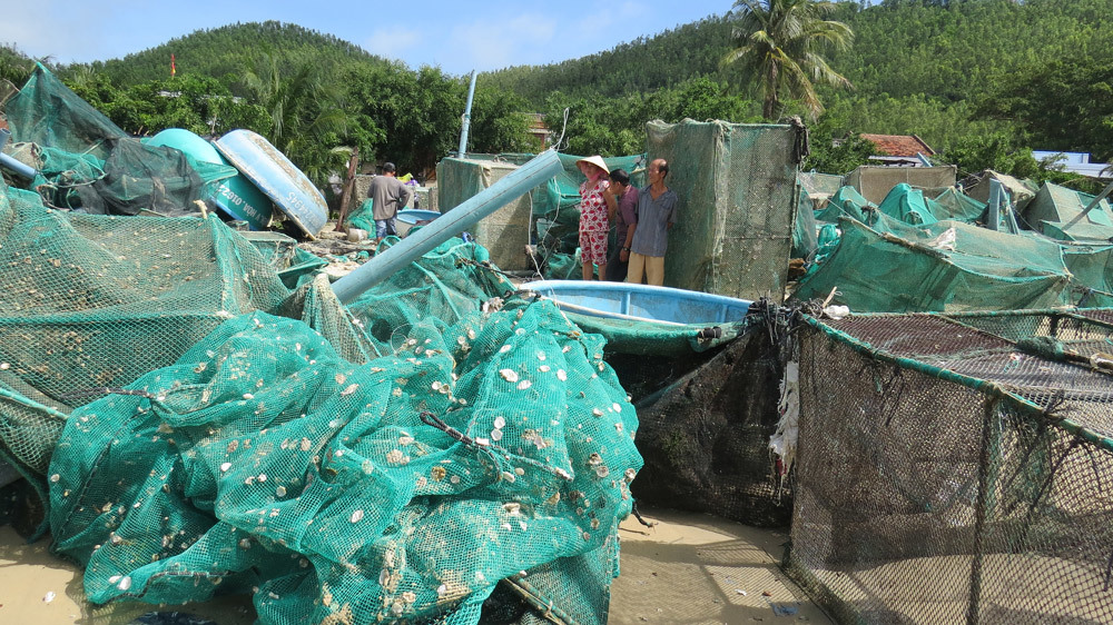 Theo ông Chính, thiệt hại ban đầu ước tính khoảng 60 tỷ đồng và còn rất nhiều lồng bè bị sóng đánh hư hỏng, tôm hùm nuôi bị sốc nước ngọt ngắc ngư, chưa thể thống kê kịp.