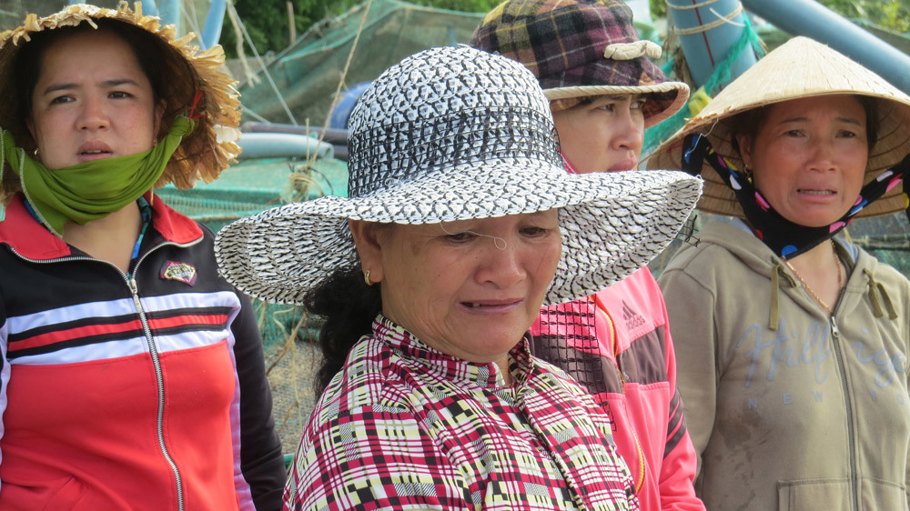 Bà Nguyễn Thụ Lụa, ở xã Xuân Thịnh (TX Sông Cầu) mếu máo khi kể về thiệt hại tiền tỷ tôm hùm