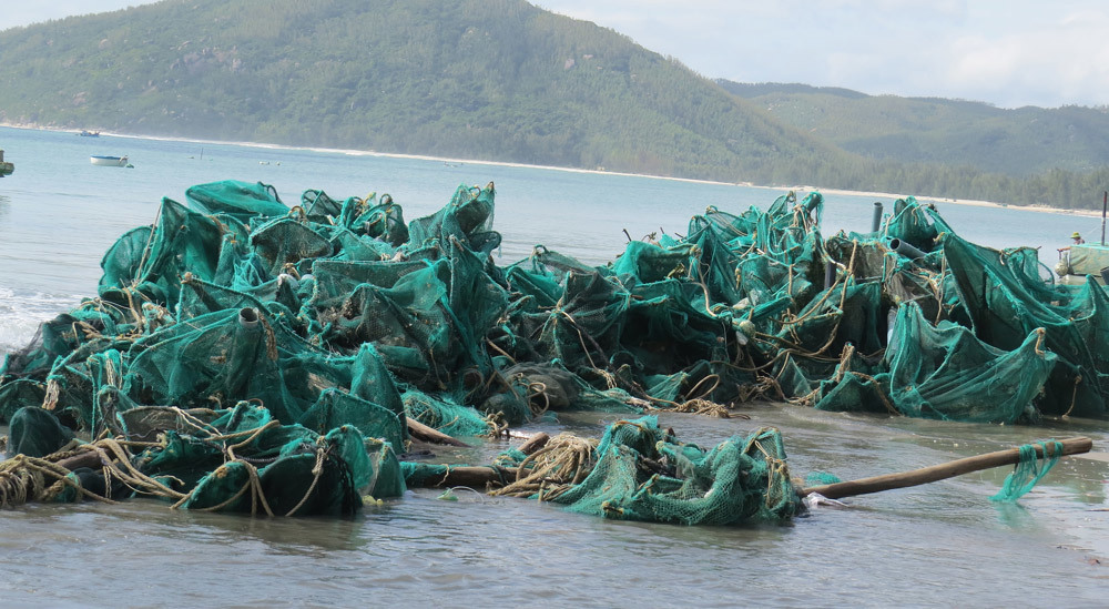 Lồng nuôi trôi dạt vào bờ người dân gom lại chất thành “núi”