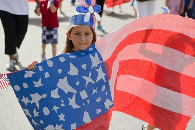 | Một bé gái khoe lá cờ Mỹ do các học sinh tự làm. (Ảnh: AP) |