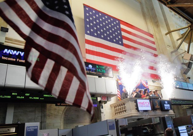 | Màn khai diễn pháo phụt trước Sở giao dịch chứng khoán New York. (Ảnh: AP) |