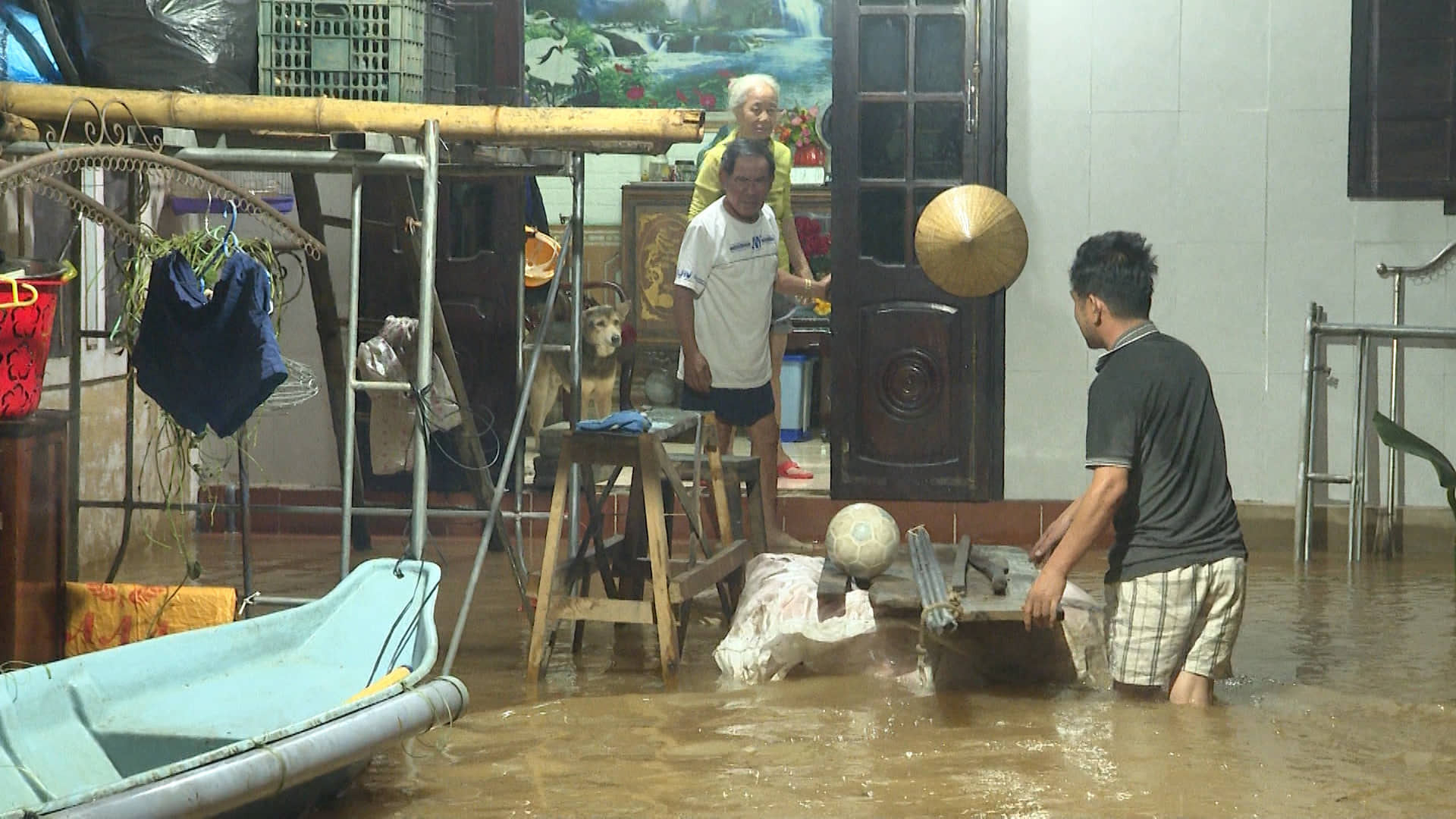 Mực nước tại sông Kiến Giang đang lên nhanh khiến nhiều thôn, xã ở khu vực trung tâm huyện Lệ Thủy đứng trước nguy cơ ngập lụt như: Liên Thủy, Phong Thủy, thị trấn Kiến Giang… Người dân tại các xã này cũng đang khẩn trương khuân vác tài sản đến chỗ cao để đề phòng nước lũ tiếp tục lên nhanh trong đêm.