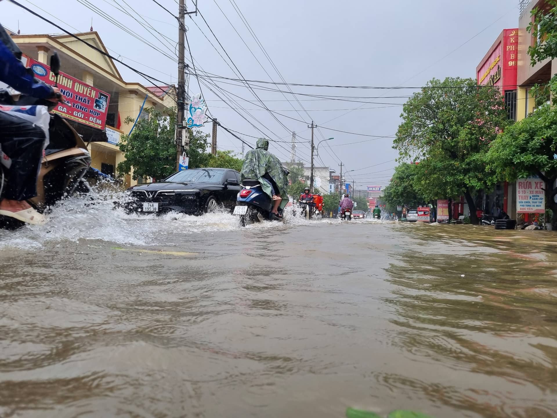 Tại TP Đồng Hới, mưa lớn cũng đã khiến một số tuyến đường như Nguyễn Hữu Cảnh, Phan Bội Châu-Đồng Hải… bị ngập cục bộ.