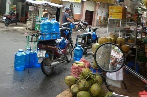 loại nước bình khác nhau, như Hana, Lucky, D3... Khi được hỏi về nguồn nước, các