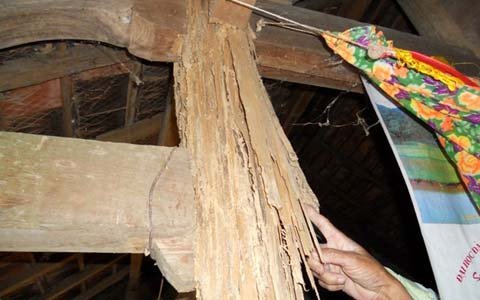 Thế nhưng, những chiếc cột đã “hết đát” không chống chọi nổi với thời gian và sức tàn phá của đàn mối.